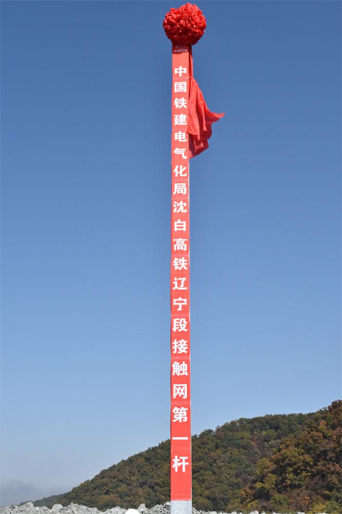 這標志著沈白高鐵遼寧段接觸網第一桿由中國鐵建電氣化局集團有限公司第三分公司組立完成,也標志著沈白高鐵遼寧段站后“四電”系統集成工程正式啟動。