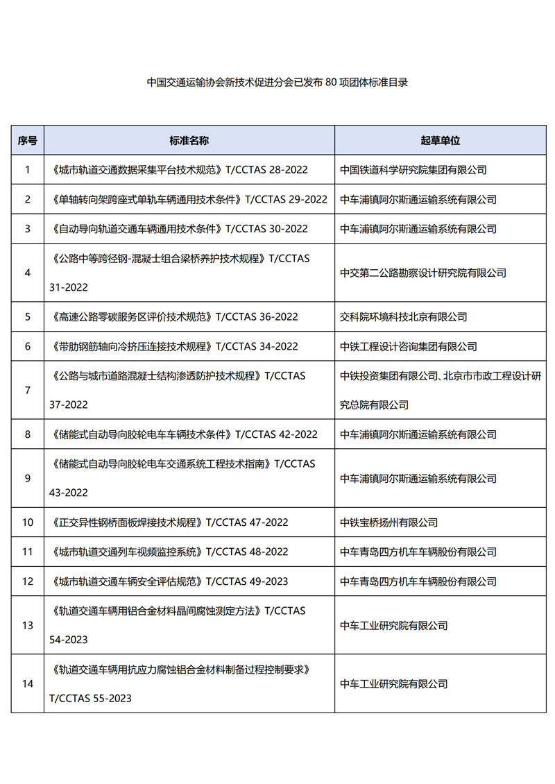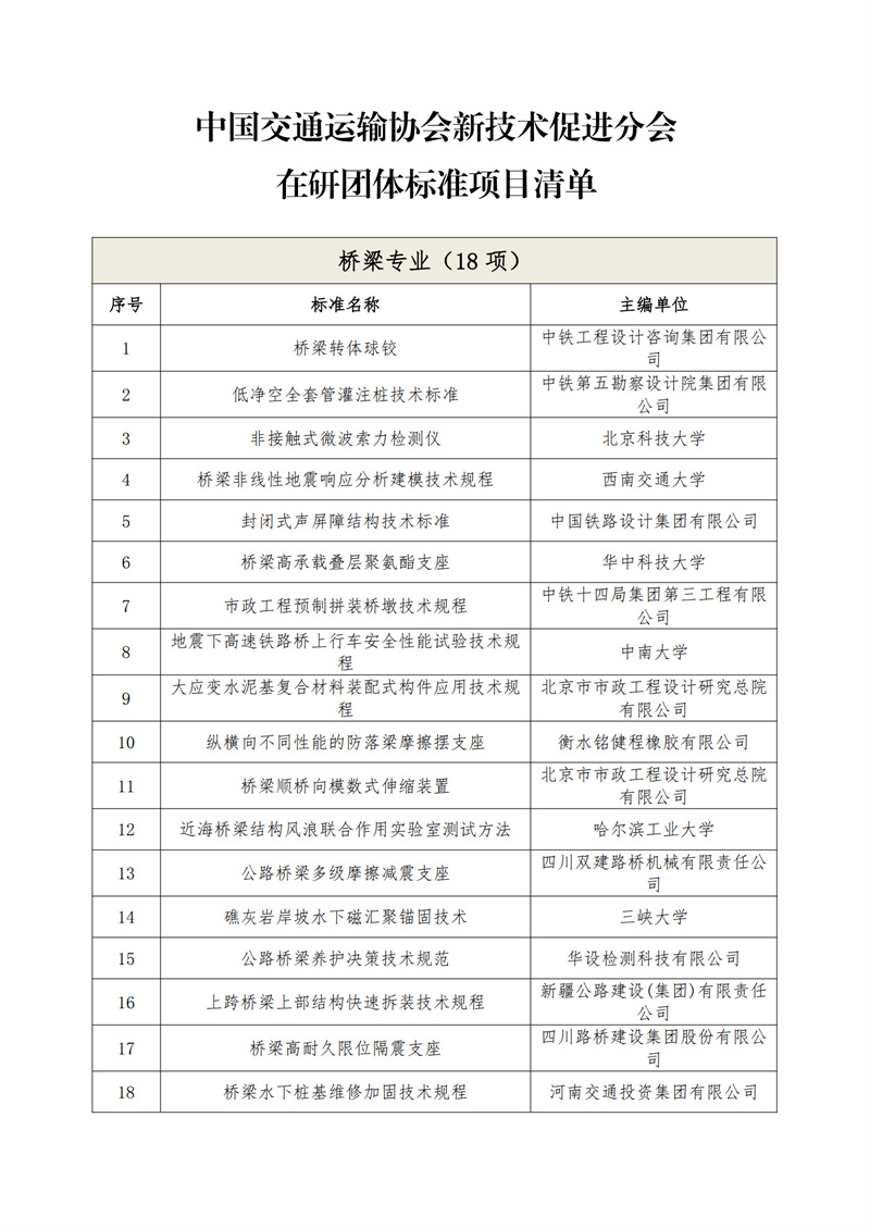 中國(guó)交通運(yùn)輸協(xié)會(huì)新技術(shù)促進(jìn)分會(huì)在研團(tuán)體標(biāo)準(zhǔn)項(xiàng)目清單