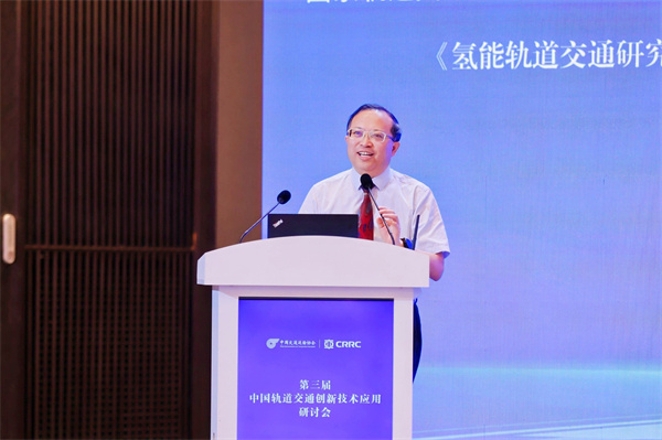 西南交通大學氫能及儲能技術研究院院長陳維榮教授受錢清泉教授委托,做倆人共同執筆的《氫能軌道交通研究現狀、機遇與挑戰》報告交流。隨后,國家高速列車青島技術創新中心梁建英主任,廣州地鐵集團有限公司黨委委員、副總經理蔡昌俊,中車長客股份公司副總經理、總工程師汪忠海,北京唐智科技發展有限公司副總經理黃貴發分別分享《數智化在軌道交通裝備領域的應用與發展趨勢》《城市軌道交通行車關鍵設備設施主動運維系統研究及工程應用》《軌道交通創新技術應用現狀與展望》《廣義共振故障診斷技術在軌道交通安全保障與智能運維中的應用》報告交流。